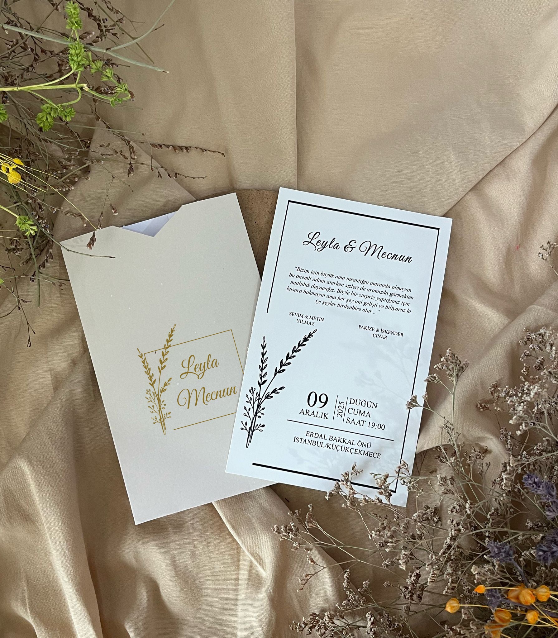 Doğal Zarafet – Siyah & Altın Detaylı Davetiye