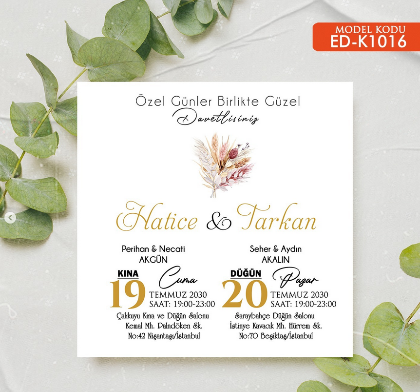 Beğendiğiniz davetiyeyi web sitemiz üzerinden seçerek siparişinizi oluşturun ve ödeme işlemini tamamlayın.