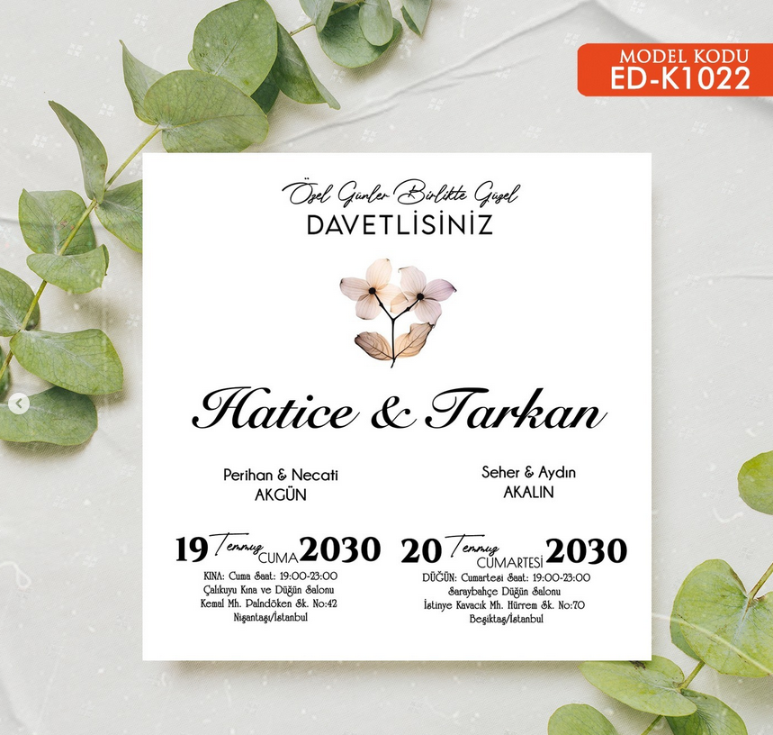 Beğendiğiniz davetiyeyi web sitemiz üzerinden seçerek siparişinizi oluşturun ve ödeme işlemini tamamlayın.