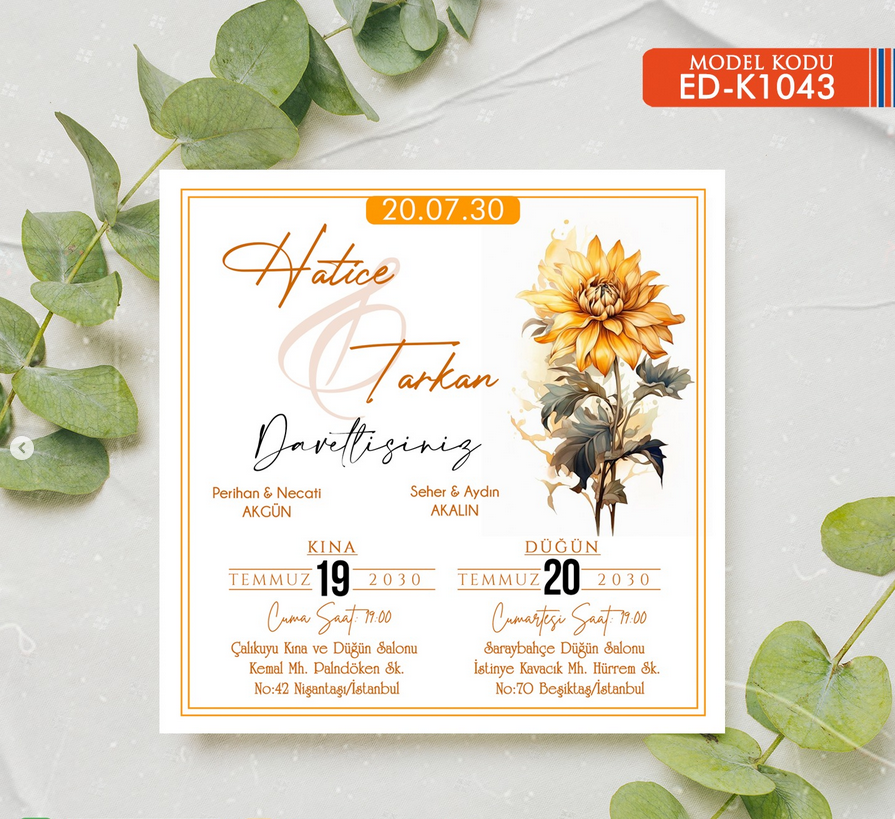 Beğendiğiniz davetiyeyi web sitemiz üzerinden seçerek siparişinizi oluşturun ve ödeme işlemini tamamlayın.