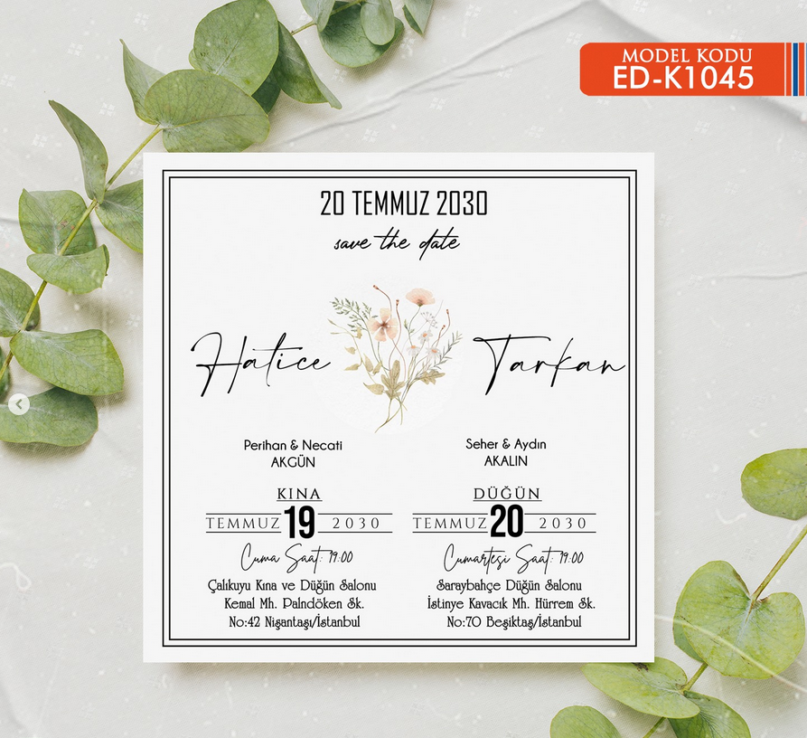 Beğendiğiniz davetiyeyi web sitemiz üzerinden seçerek siparişinizi oluşturun ve ödeme işlemini tamamlayın.