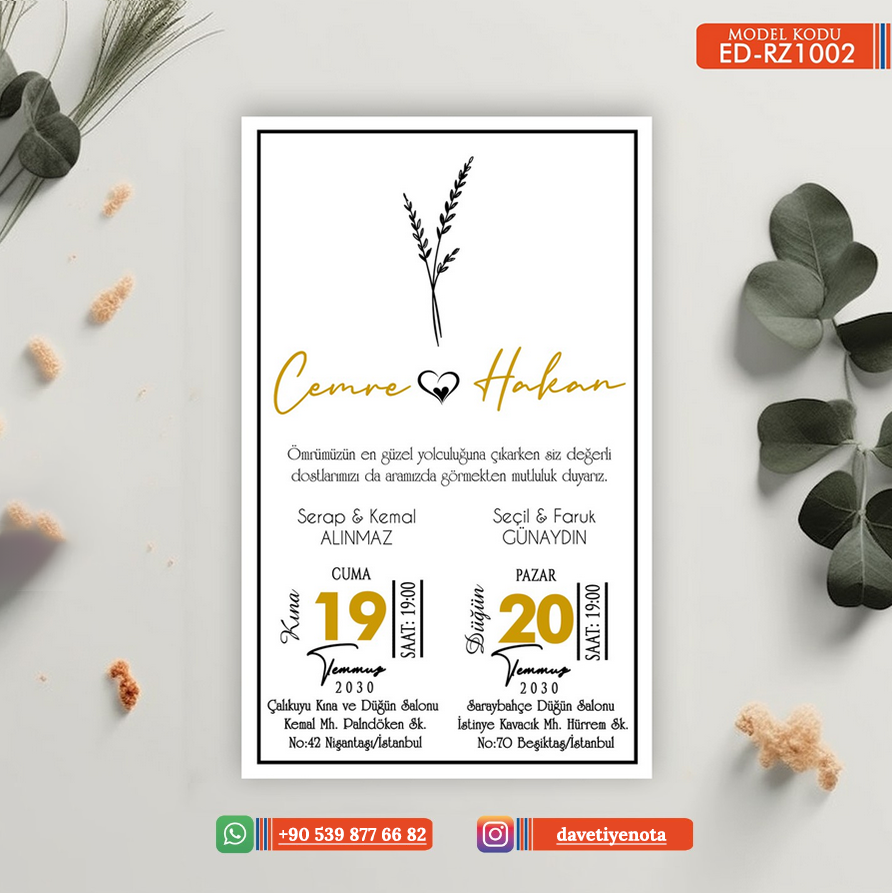 Beğendiğiniz davetiyeyi web sitemiz üzerinden seçerek siparişinizi oluşturun ve ödeme işlemini tamamlayın.