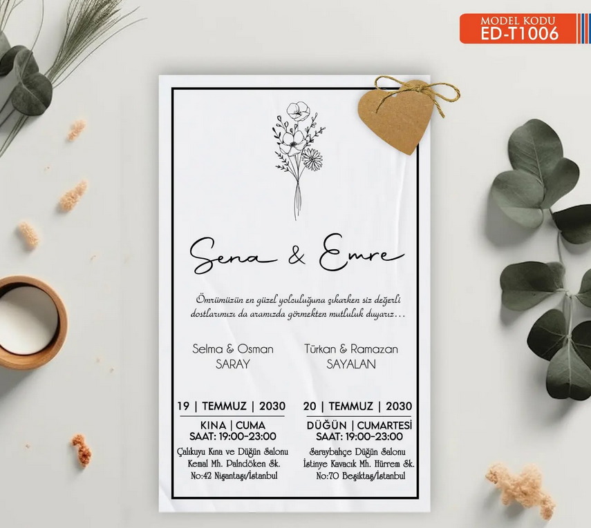 Beğendiğiniz davetiyeyi web sitemiz üzerinden seçerek siparişinizi oluşturun ve ödeme işlemini tamamlayın.