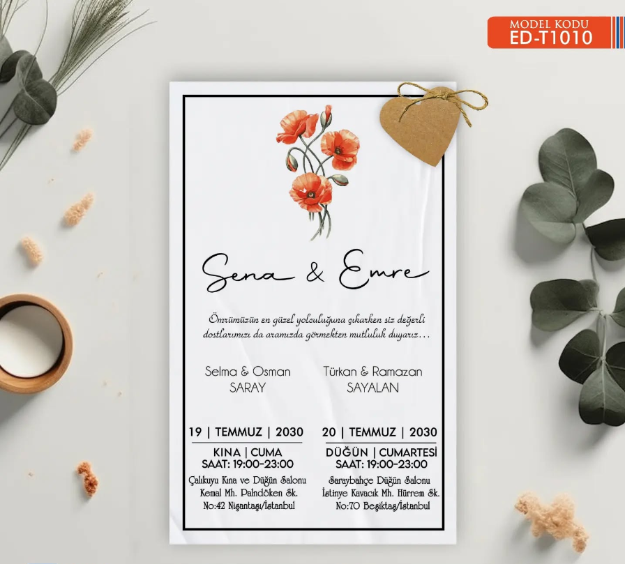 Beğendiğiniz davetiyeyi web sitemiz üzerinden seçerek siparişinizi oluşturun ve ödeme işlemini tamamlayın.
