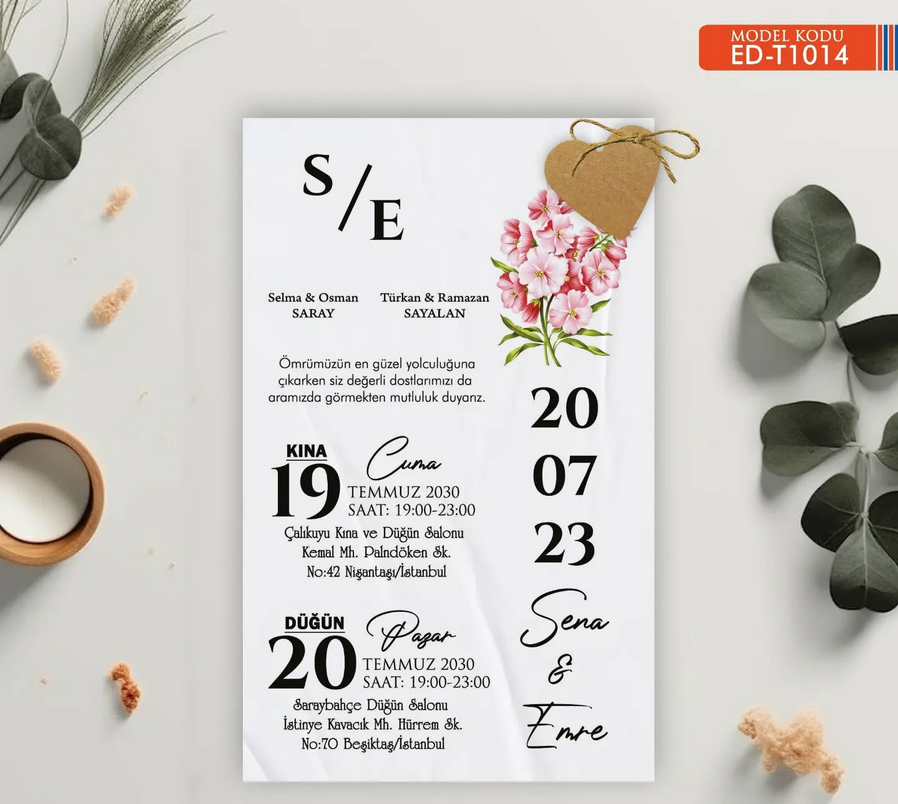 Beğendiğiniz davetiyeyi web sitemiz üzerinden seçerek siparişinizi oluşturun ve ödeme işlemini tamamlayın.