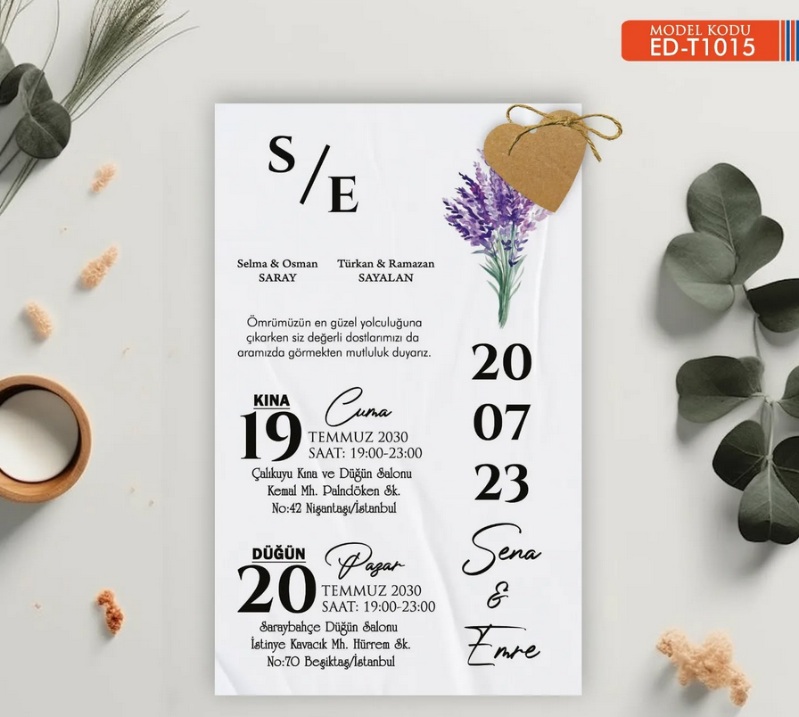 Beğendiğiniz davetiyeyi web sitemiz üzerinden seçerek siparişinizi oluşturun ve ödeme işlemini tamamlayın.
