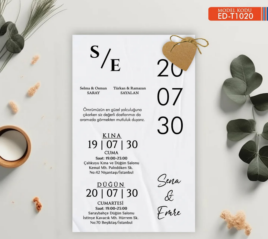 Beğendiğiniz davetiyeyi web sitemiz üzerinden seçerek siparişinizi oluşturun ve ödeme işlemini tamamlayın.