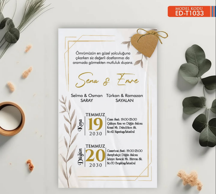 Beğendiğiniz davetiyeyi web sitemiz üzerinden seçerek siparişinizi oluşturun ve ödeme işlemini tamamlayın.