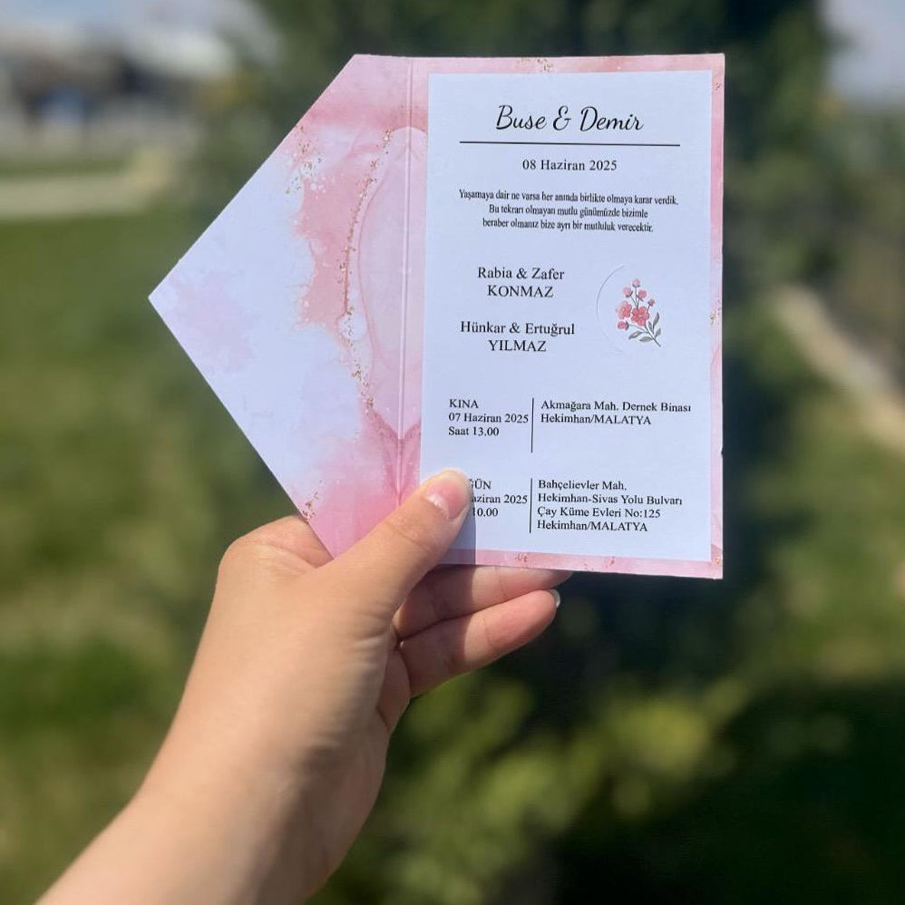 Beğendiğiniz davetiyeyi web sitemiz üzerinden seçerek siparişinizi oluşturun ve ödeme işlemini tamamlayın.