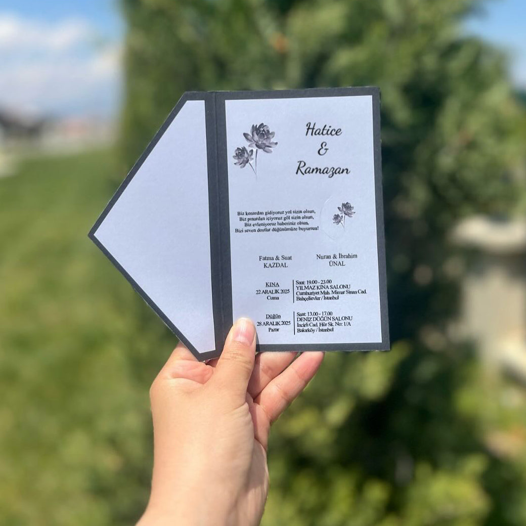 Beğendiğiniz davetiyeyi web sitemiz üzerinden seçerek siparişinizi oluşturun ve ödeme işlemini tamamlayın.
